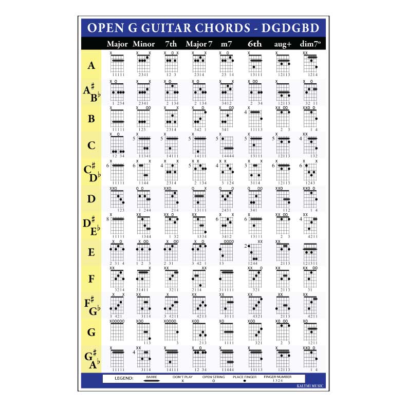 OPEN G (DGDGBD) Guitar Chords and Fingerboard Posters