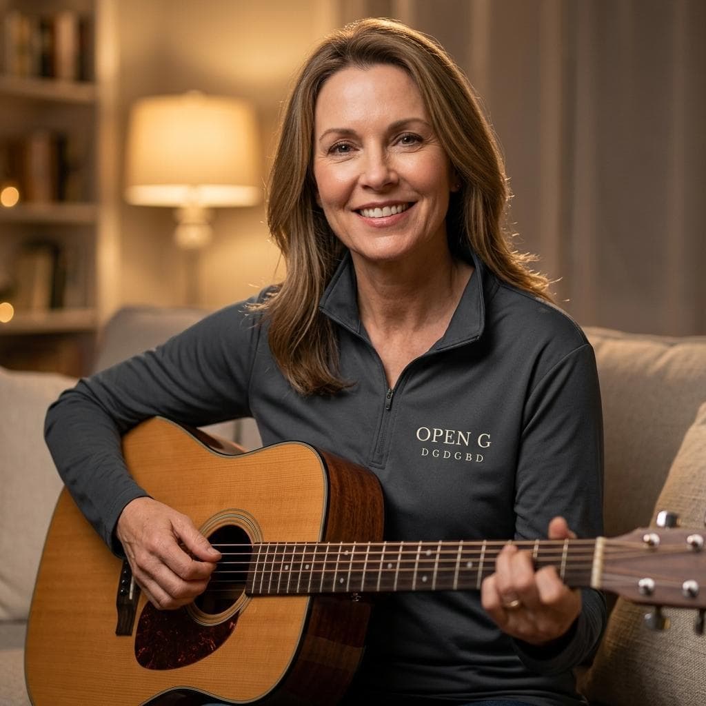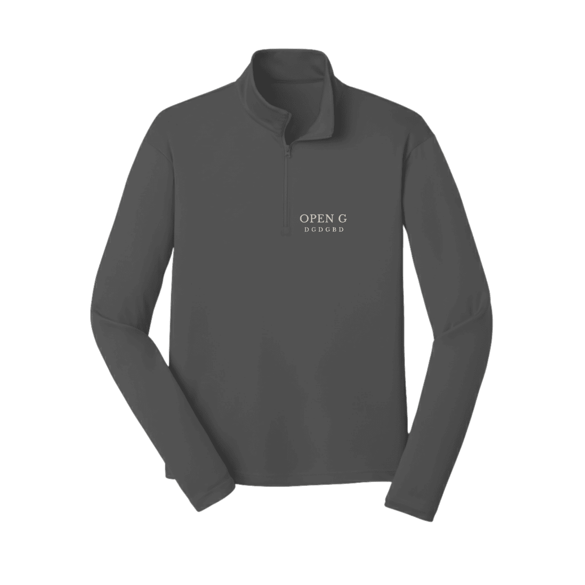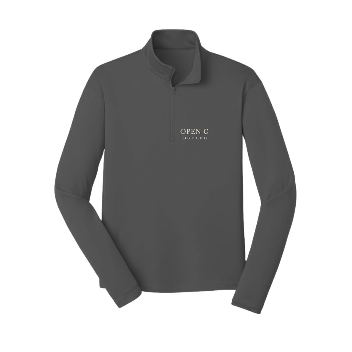 A clean, minimal quarter-zip for guitar players who use Open G tuning. Featuring the OPEN G / D G D G B D layout, this design reflects a practical approach to playing, focused on tone, feel, and simplicity.
